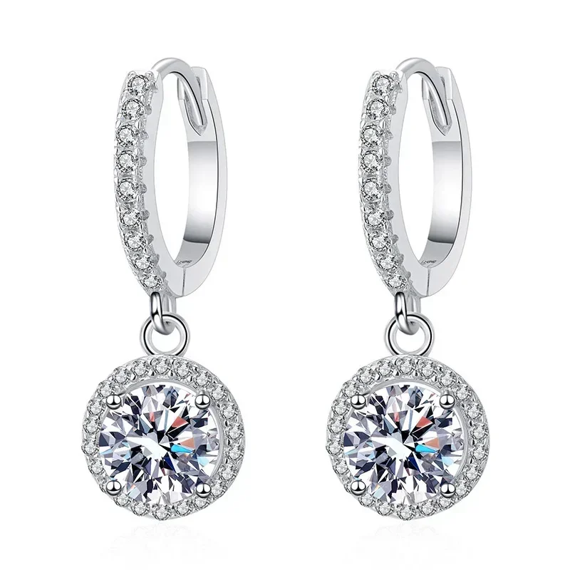 925 Sterling Silver 1 Carat Moissanite Round Earrings for Women Luxury Evening Style