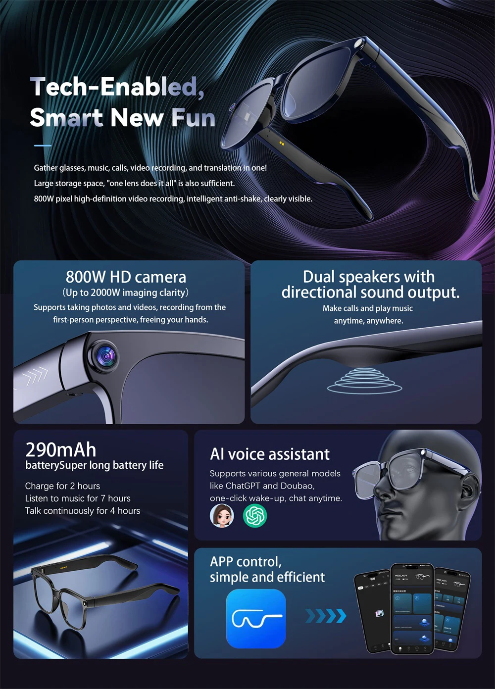 - Function: VIDEO,Voice Assistant,calling,Music,AI translator,Anti-blue light