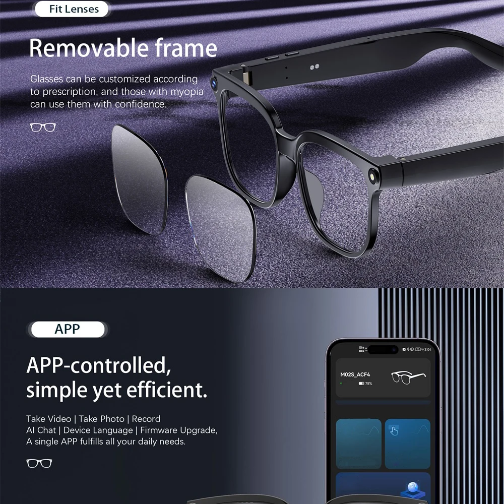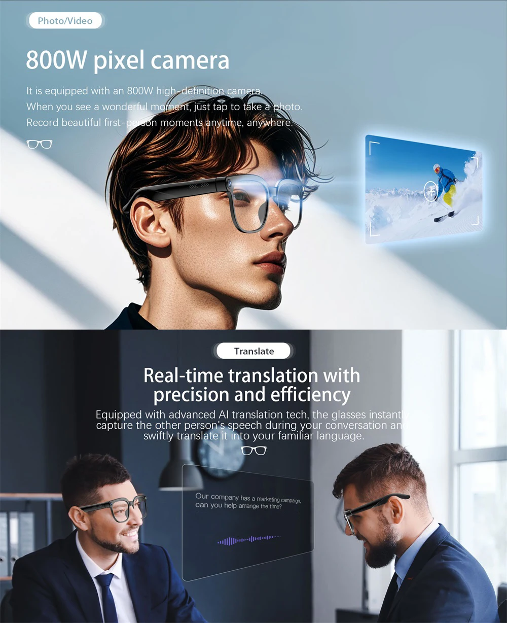 AI Smart Glasses 8 Million Camera Bluetooth Sunglasses Shoot Audio Call Video Music Player Multifunctional Smart Glasses Men