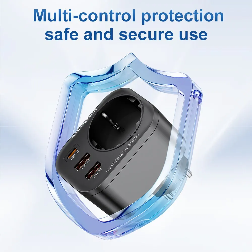 Product Name :ASOMETECH 4000W Power Sockets With 33W USB GaN Charger