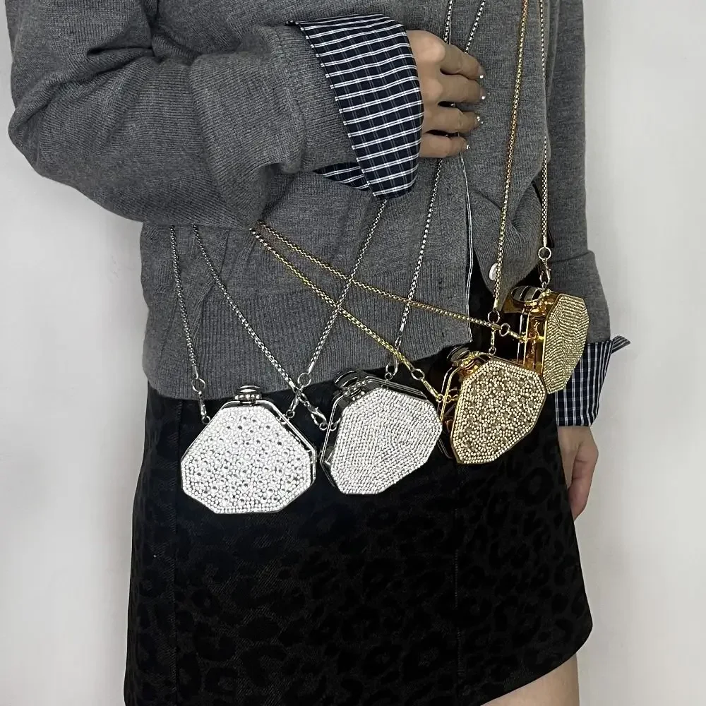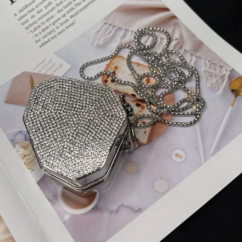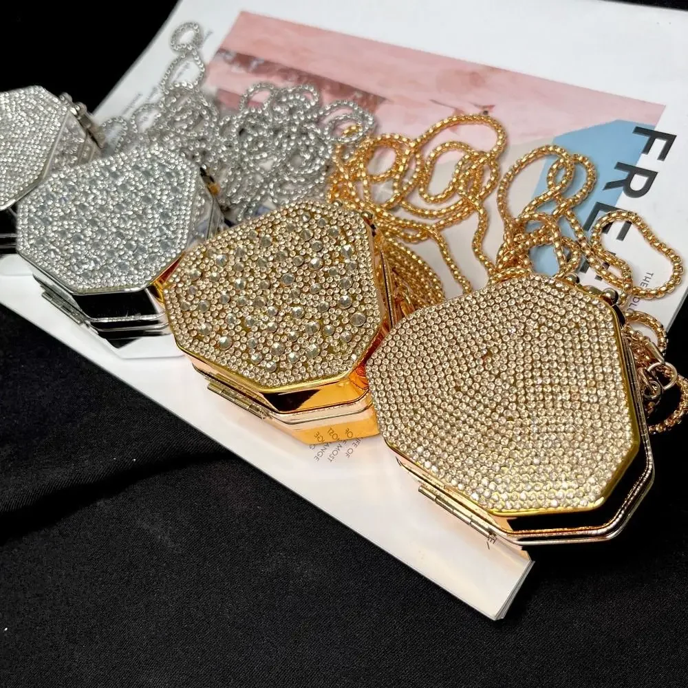 Detachable Long Chain Rhinestone Inlay Clutch Bag Lightweight Waterproof Crystal Glitter Purse Small Capacity Glitter