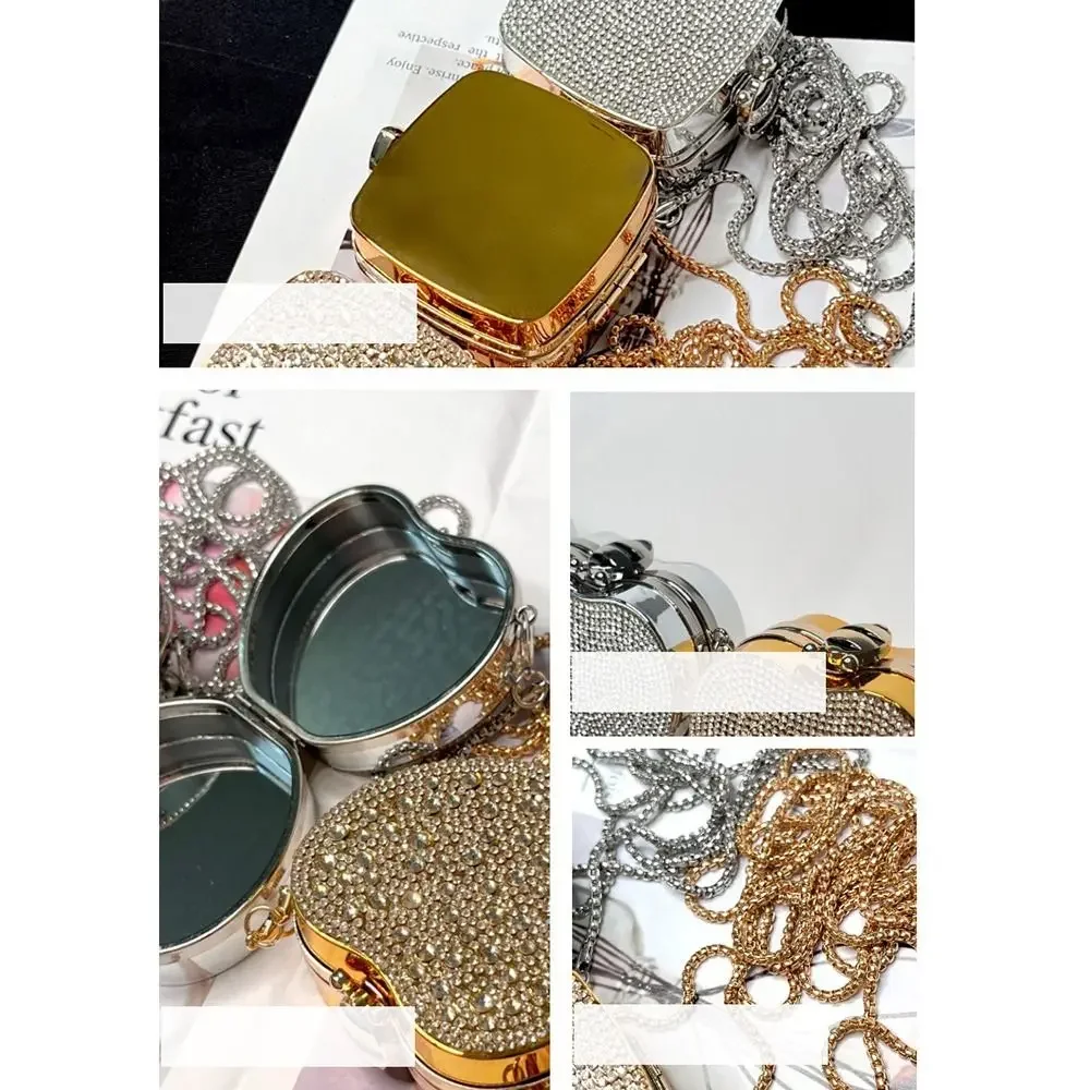 Package Includes: 1pc Rhinestone Inlay Clutch Elegant & Luxury. This shiny rhinestone clutch is cute and luxury, with a beautiful full rhinestone, which is hand-applied by skilled workers to solid metal frames. High quality plating, with dazzling rhinestone and unique shape. Delicate and elegant, versatile and stylish.