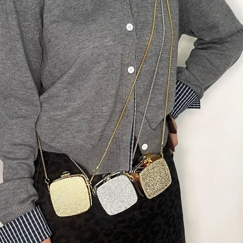 Detachable Long Chain Rhinestone Inlay Clutch Bag Lightweight Waterproof Crystal Glitter Purse Small Capacity Glitter