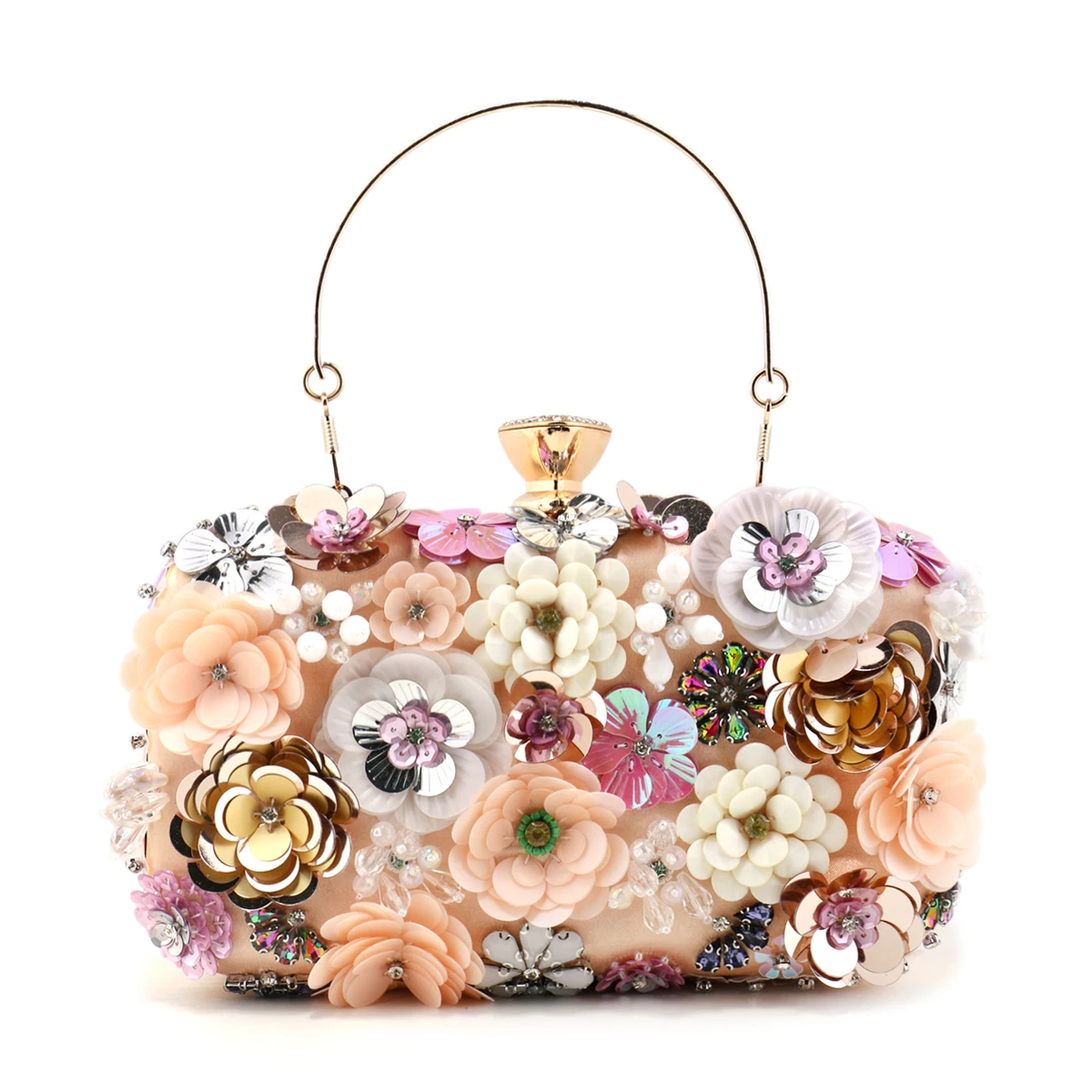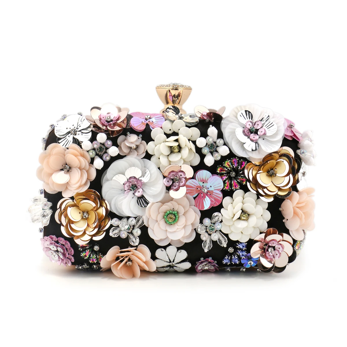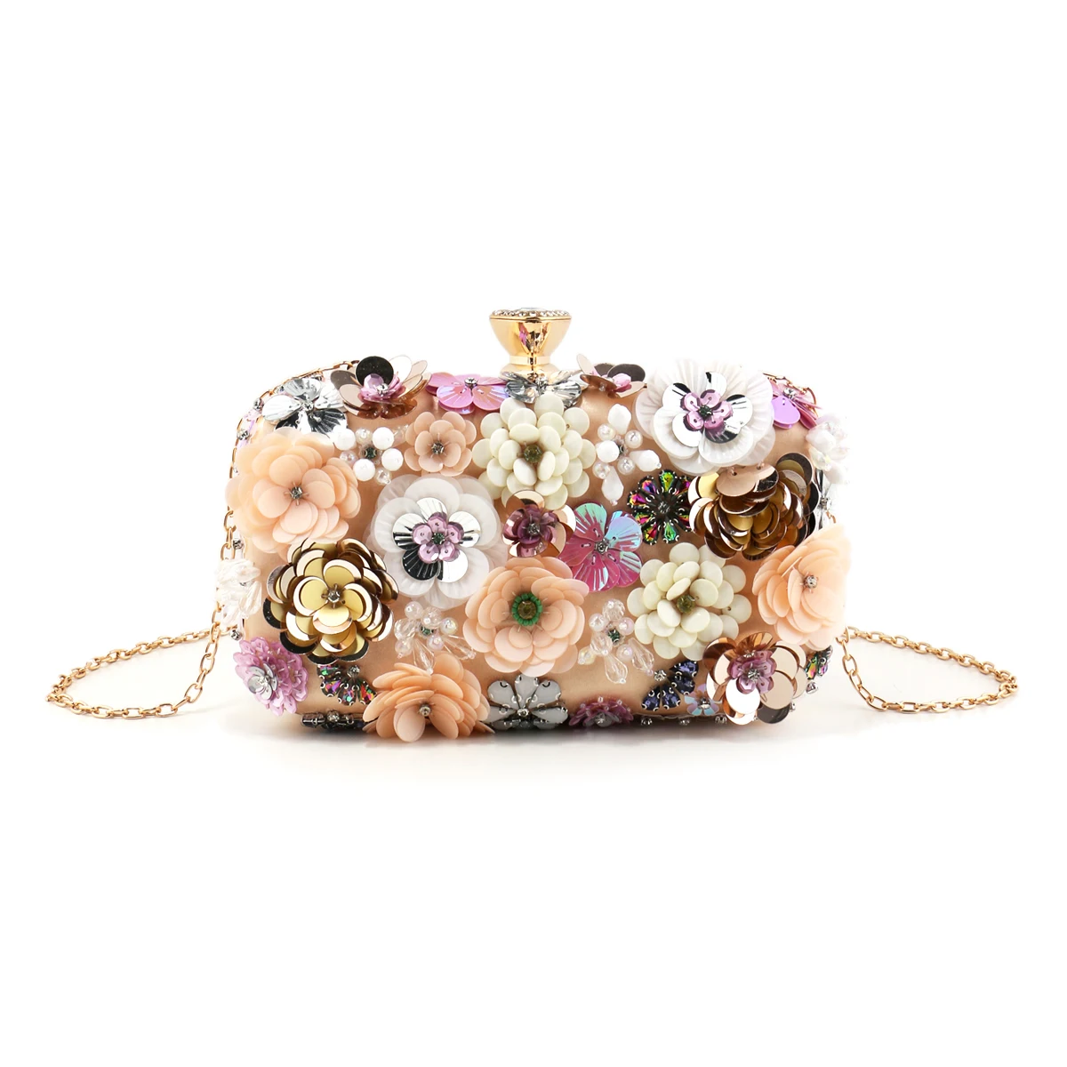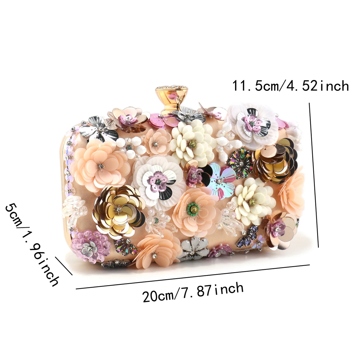 Fashion Women Clutch Flower Rhinestones Cute Dress Gift Prom Purse Evening Bags Embroidery Candy Handbags With Chain
