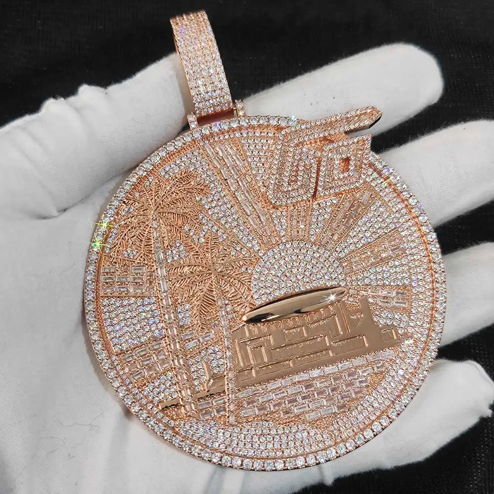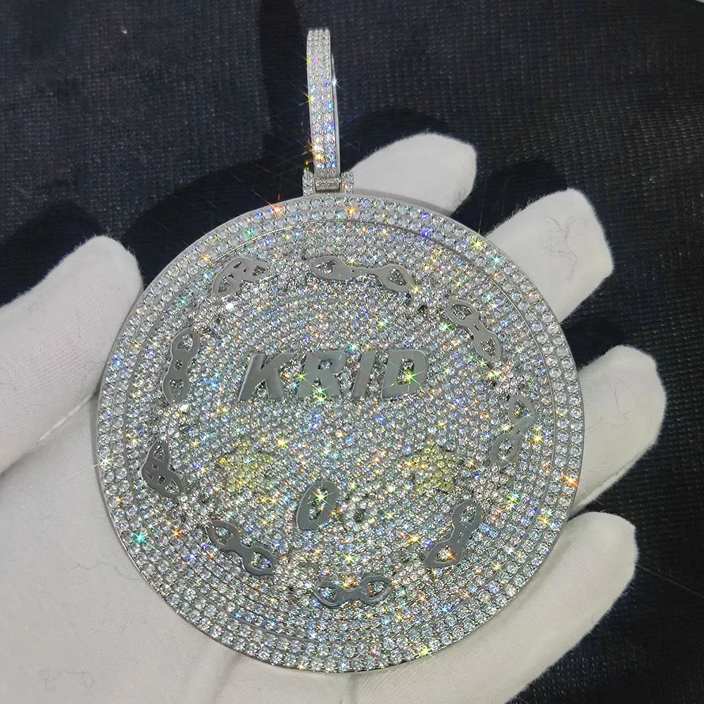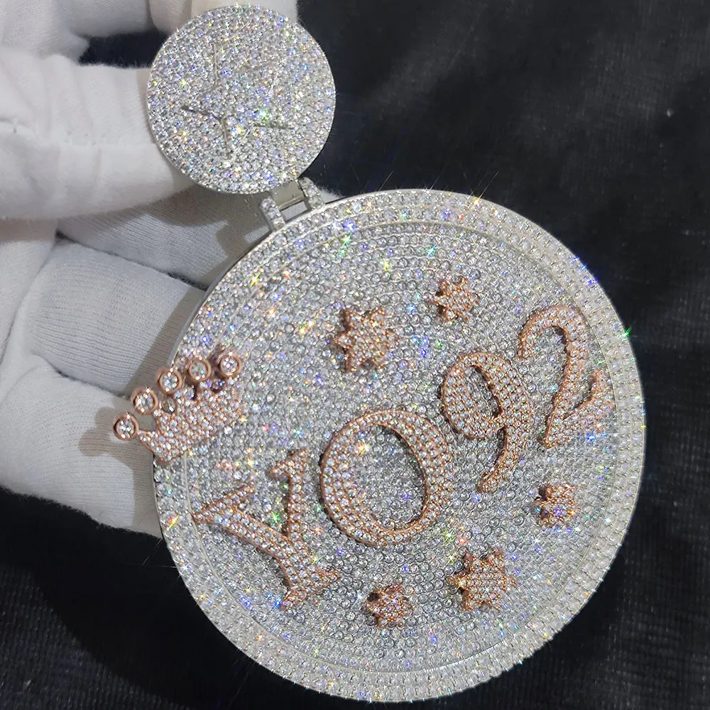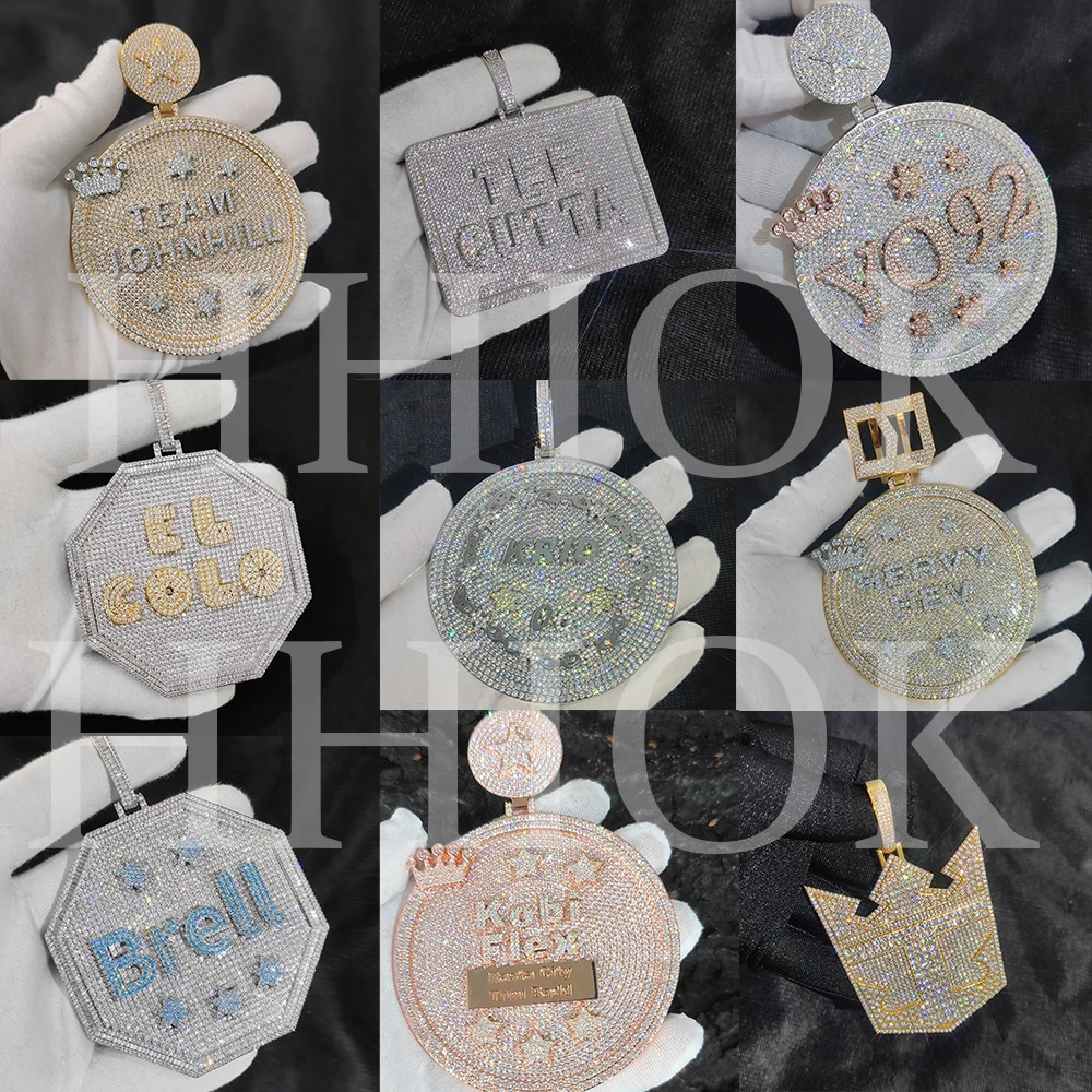 Custom VVS1 Moissanite Diamond Photo Necklace 26/35/45MM Personalized Memory Picture Pendant 925 Sterling Silver Hip Hop Jewelry