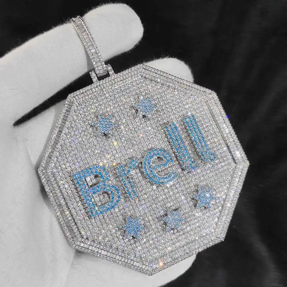 Hip Hop Jewelry Custom Full Iced Out Polygon Pendant Name/Logo/Letter Personalized Your Own CZ Charm Necklace With CAD 3D Map