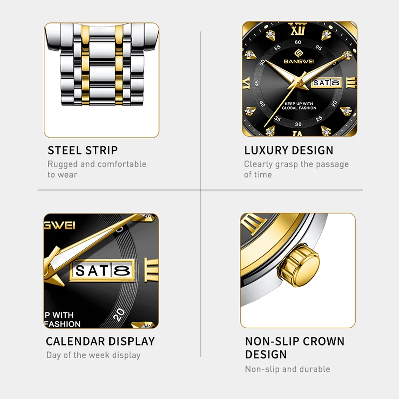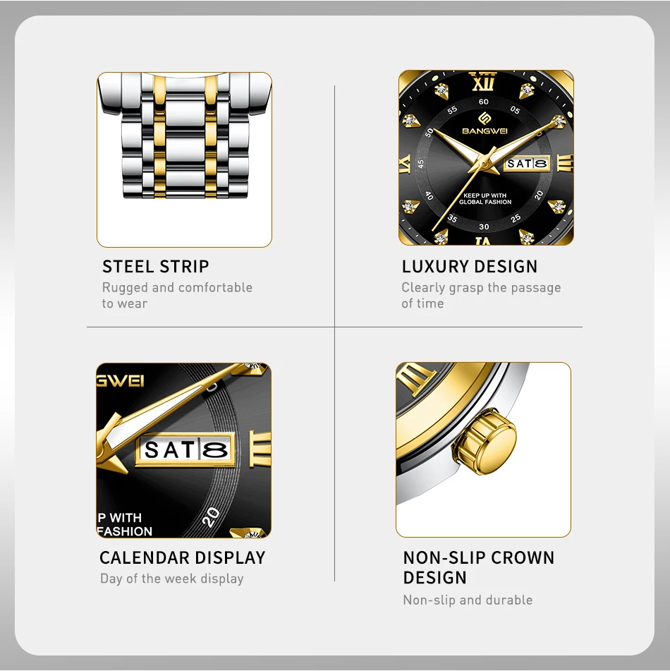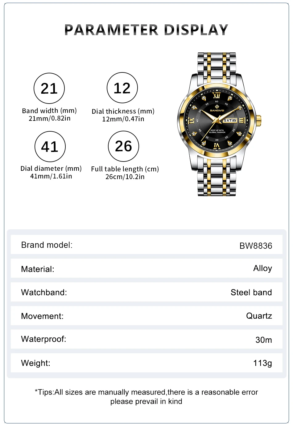 - Feature: Shock Resistant,Luminous,Auto Date,Complete Calendar,Water-Resistance,swim,Week Display,Luminous Hands