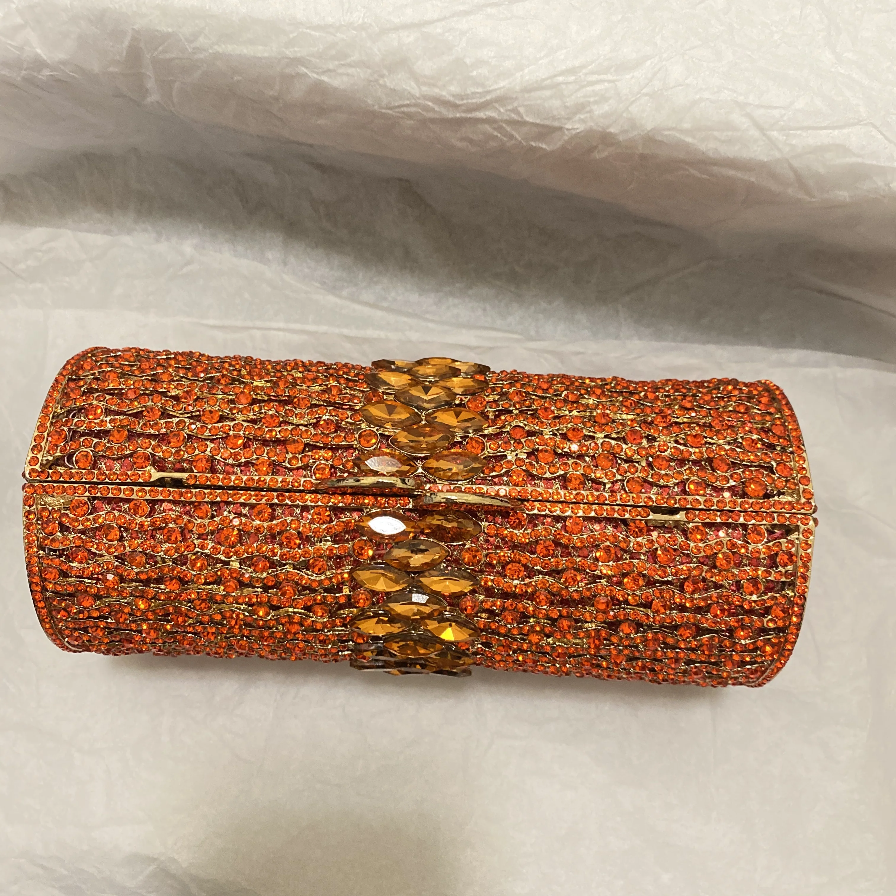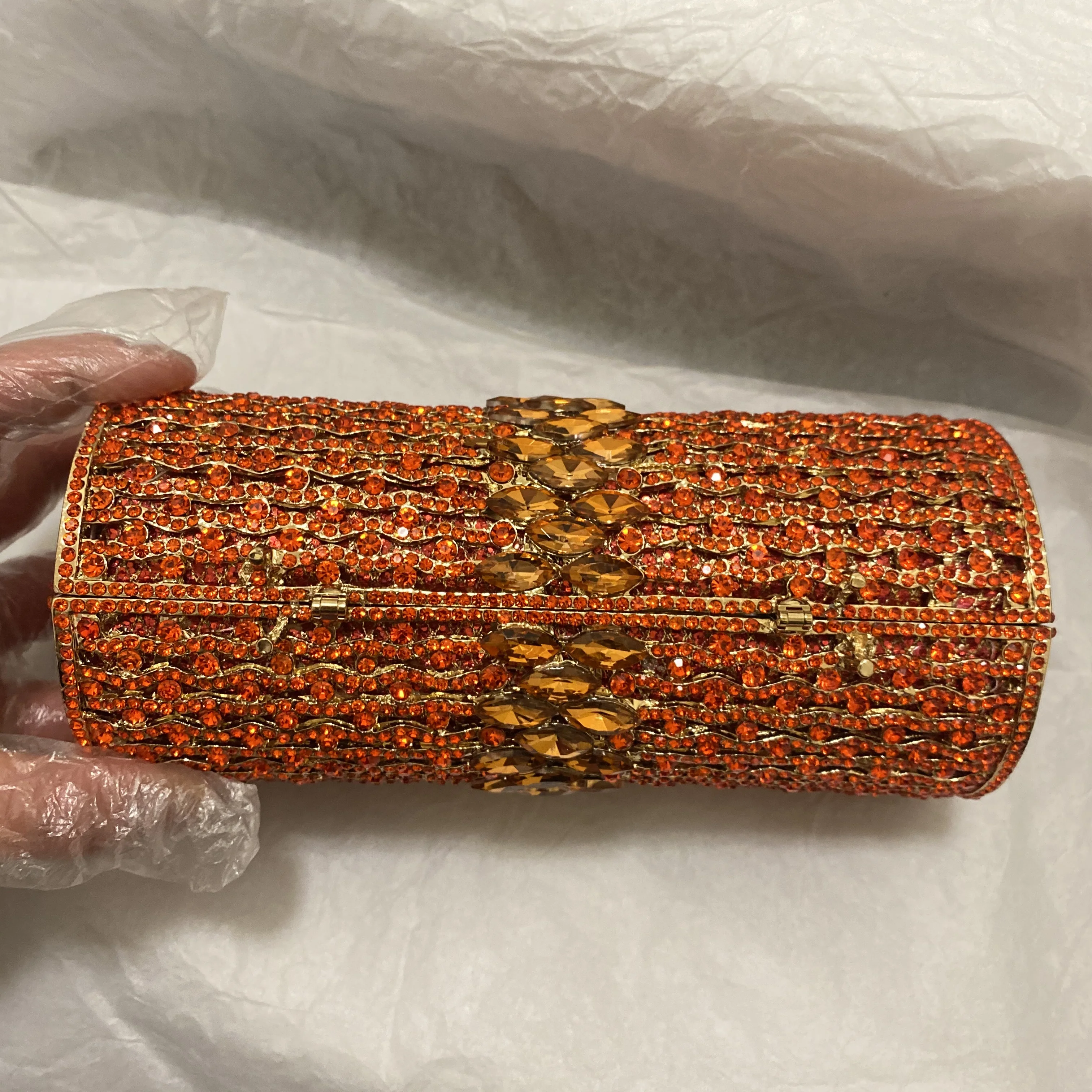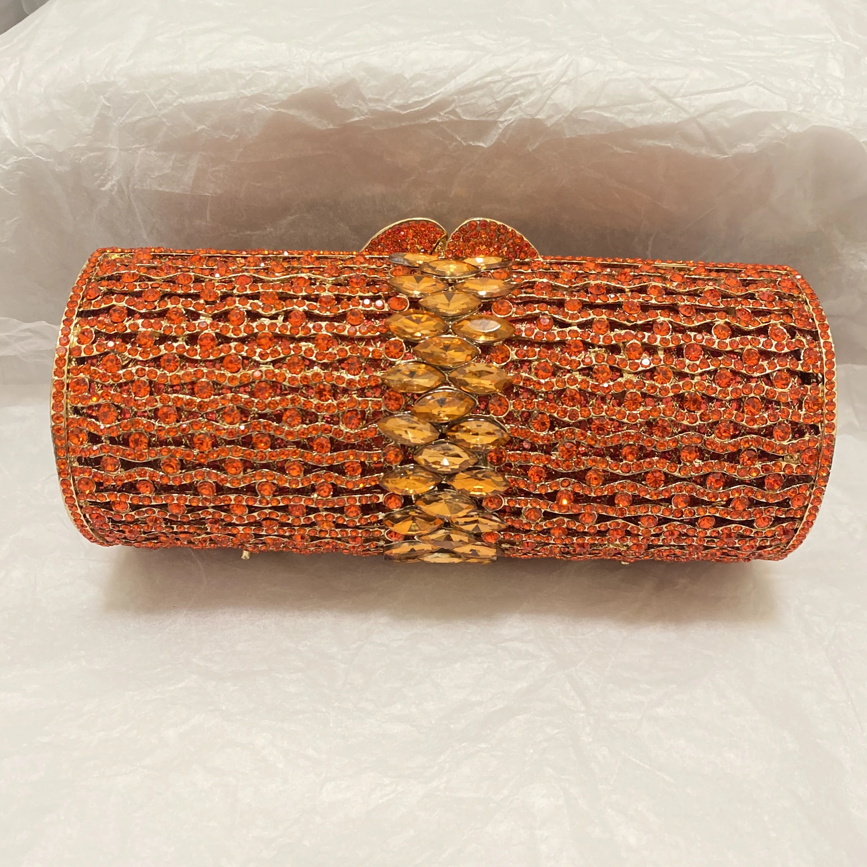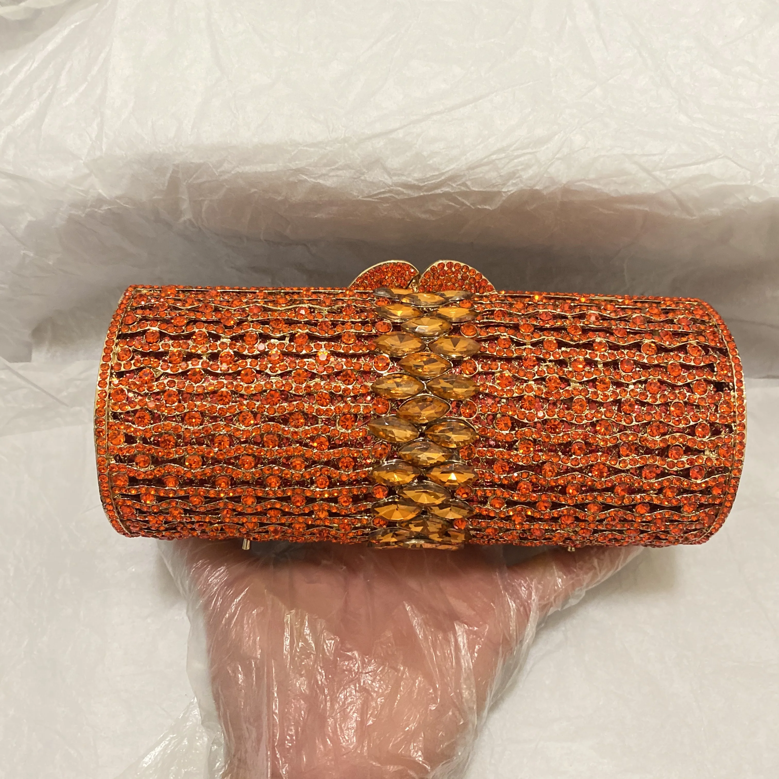 Orange Evening Bags Purses Cylindrical Shape Sliver/ Gold Wedding Bridal Purses Women’s Diamond Bag Formal Rhinestone Clutches