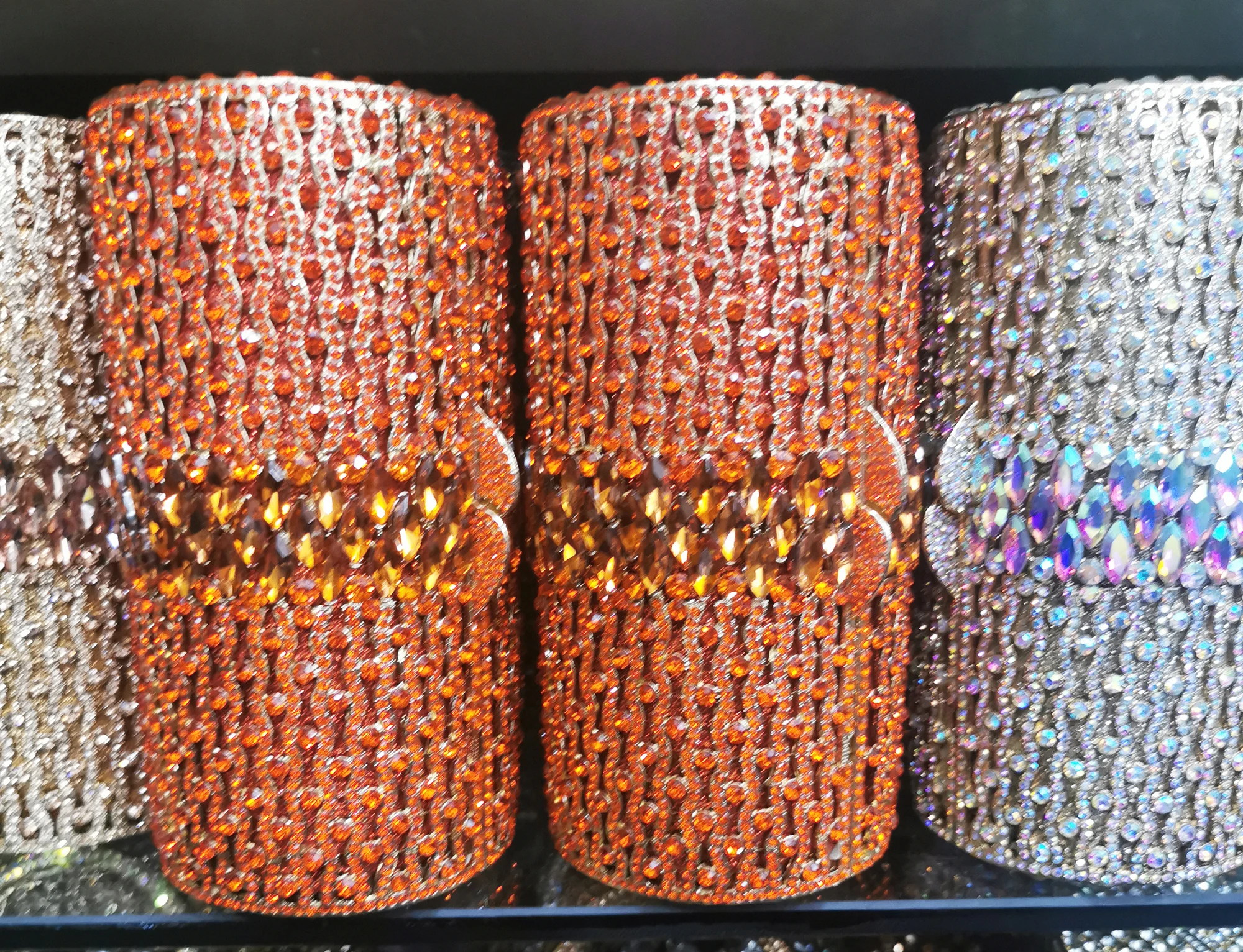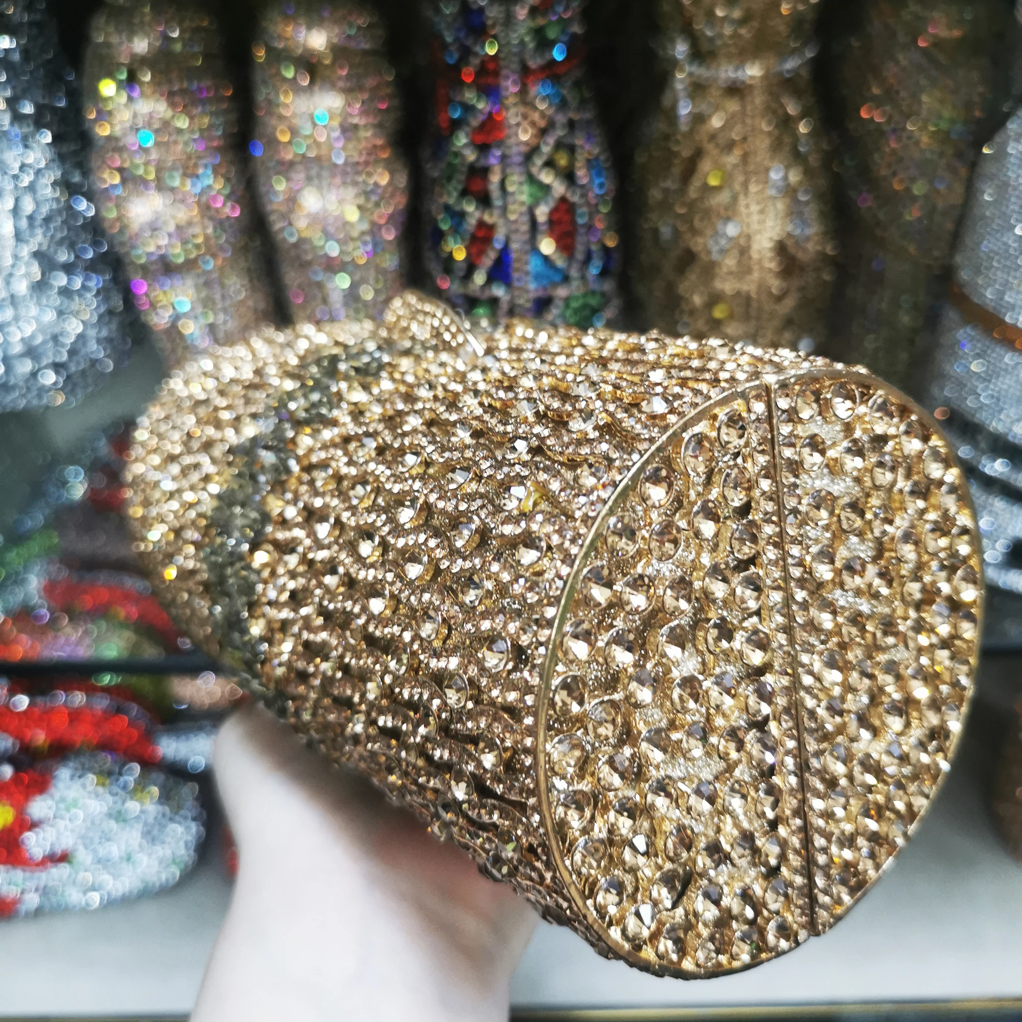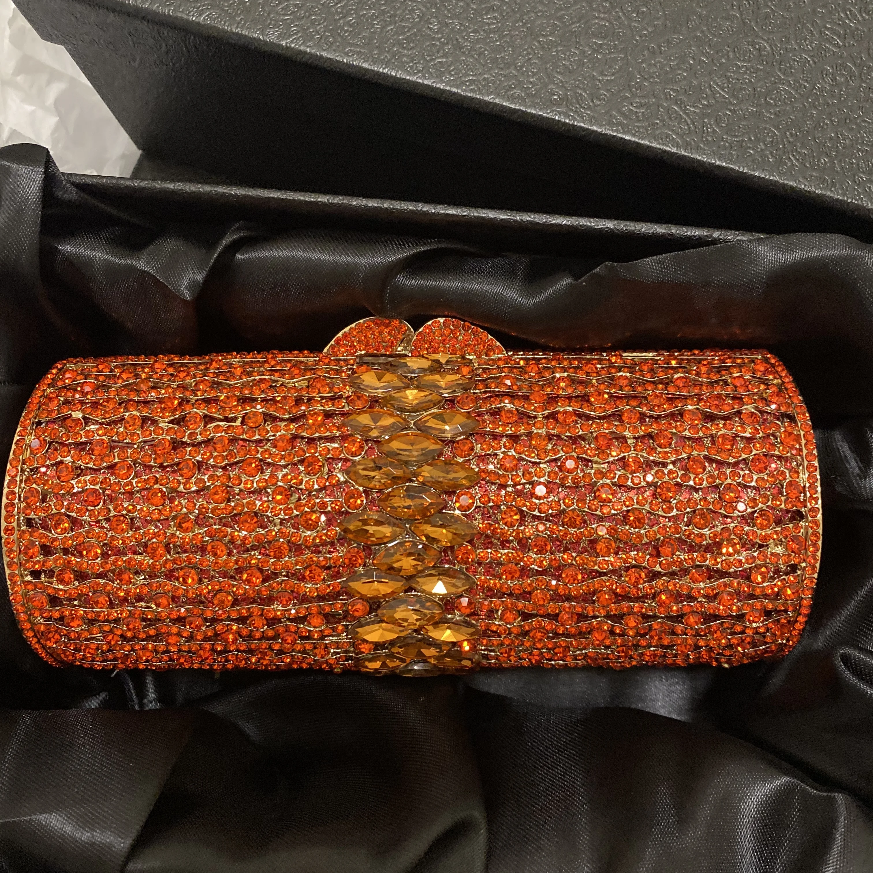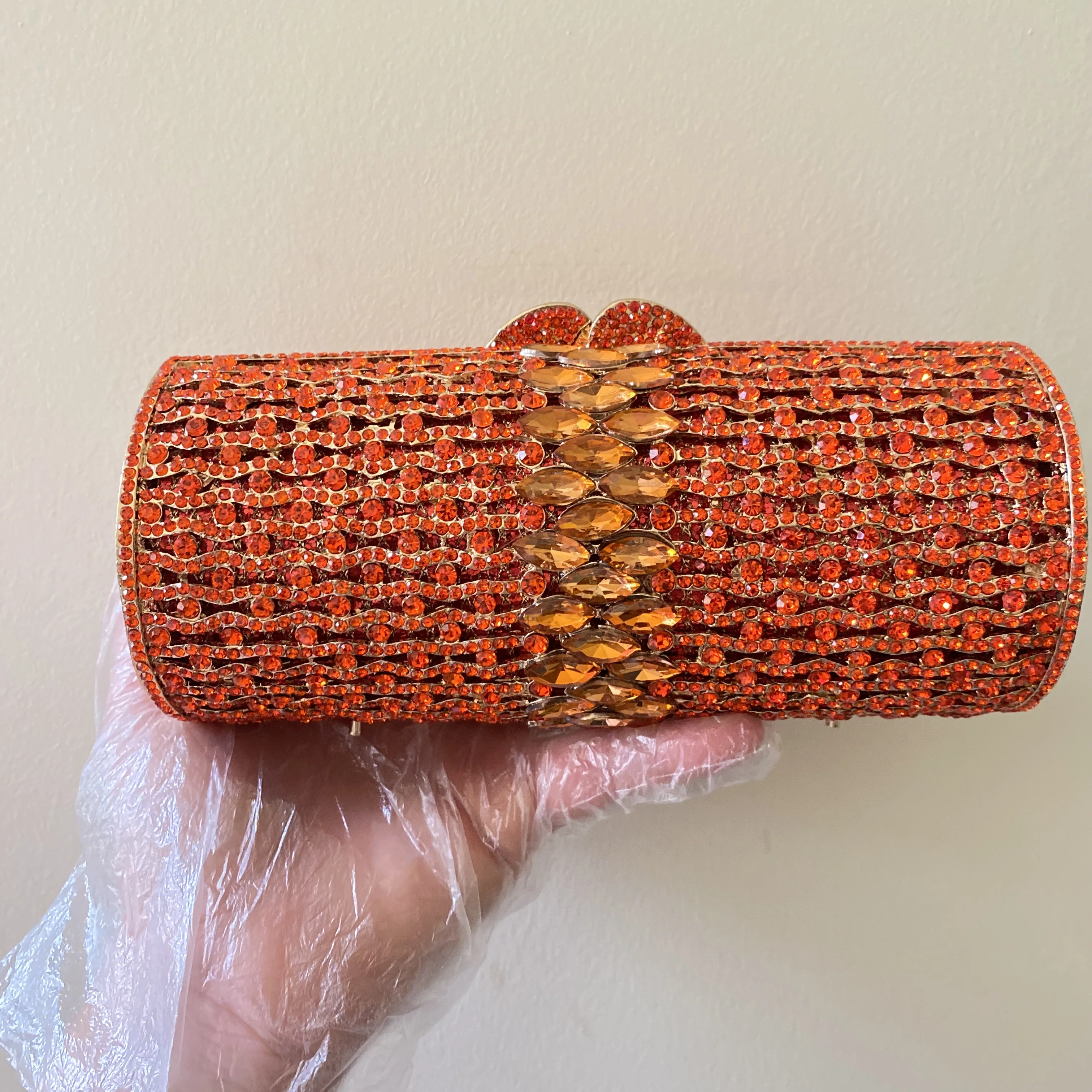 Orange Evening Bags Purses Cylindrical Shape Sliver/ Gold Wedding Bridal Purses Women’s Diamond Bag Formal Rhinestone Clutches