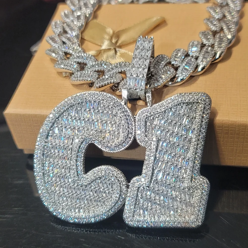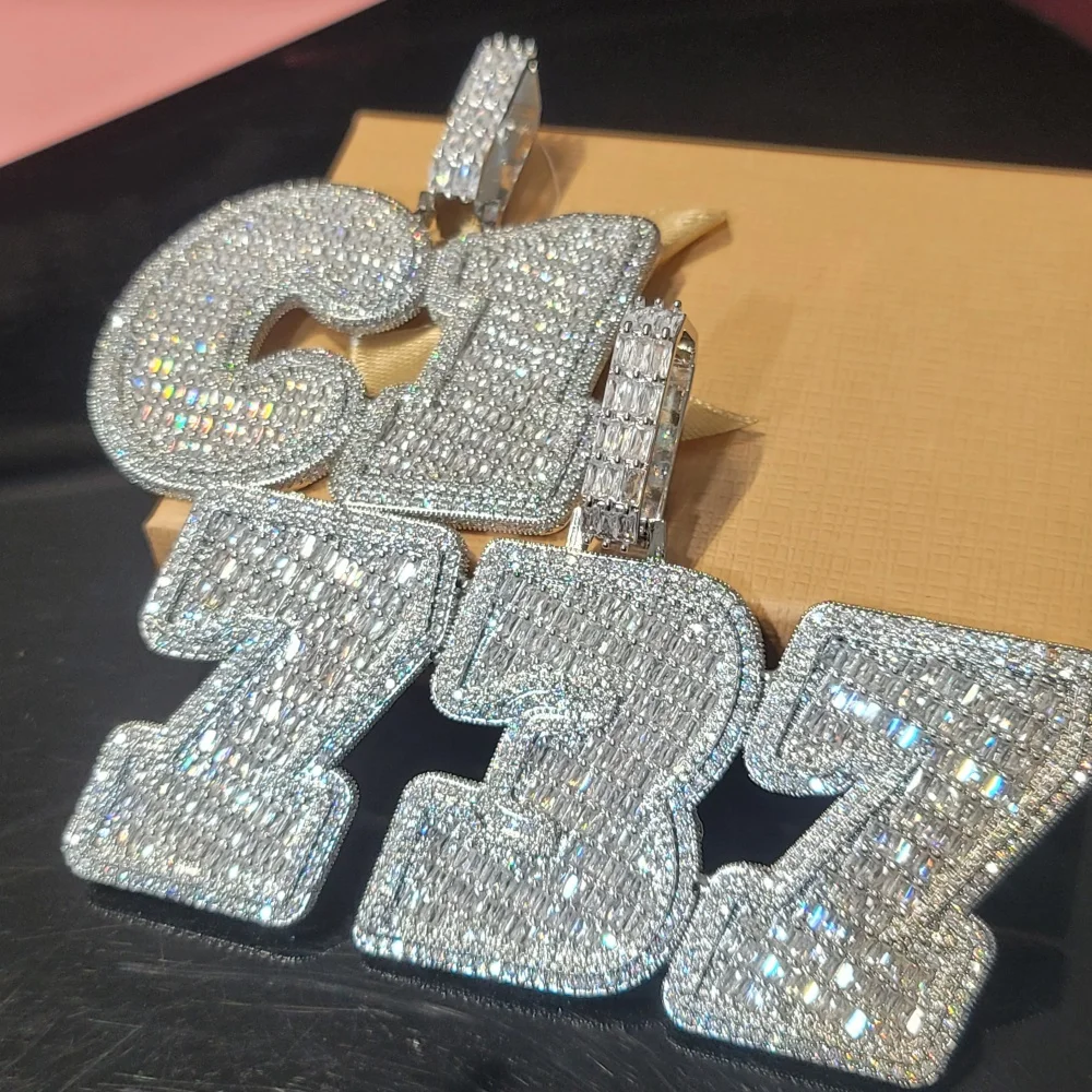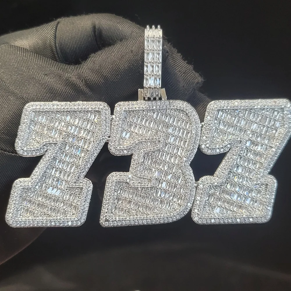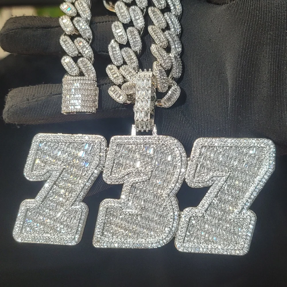 Personalized Solid Back Name Necklace Chain Custom Iced Out Number&Letter Pendant Birthday Gift Icy Baguettecz Hip Hop Jewelry