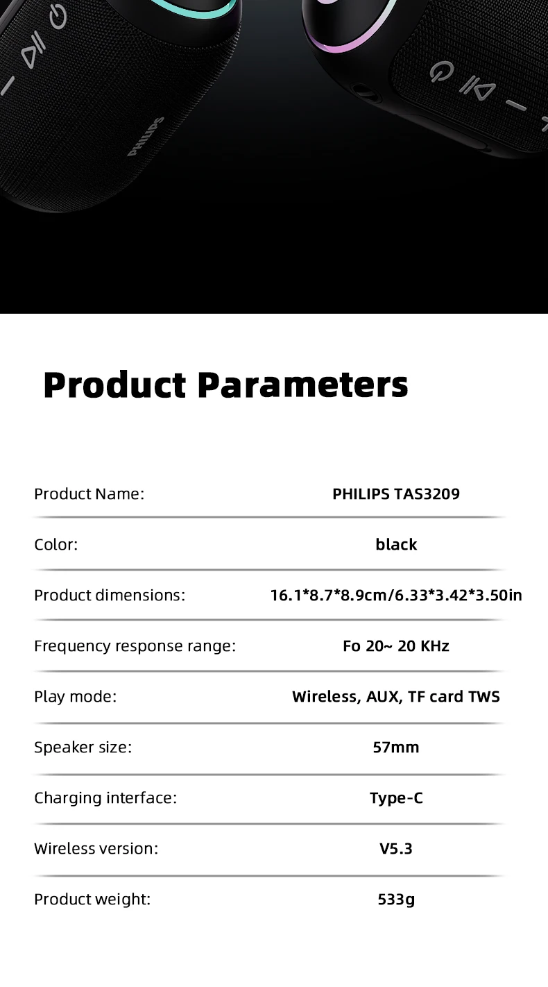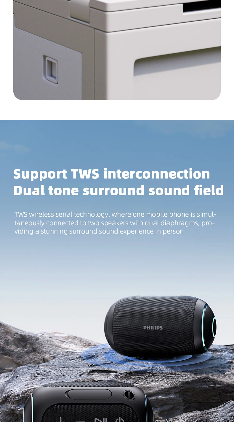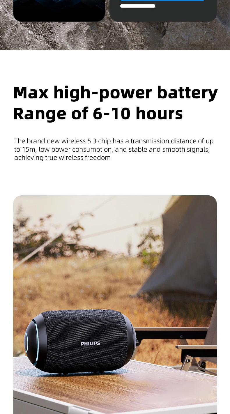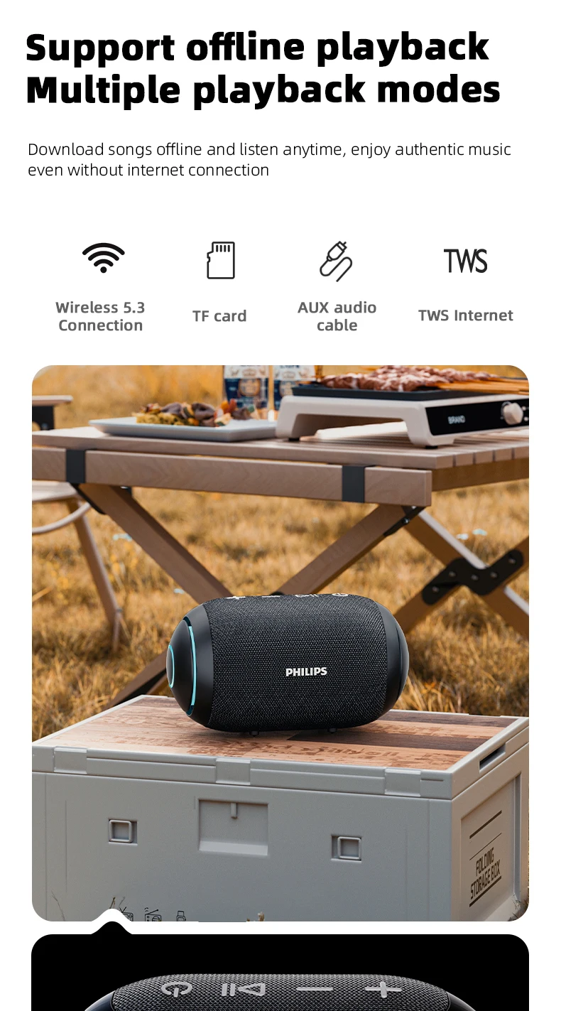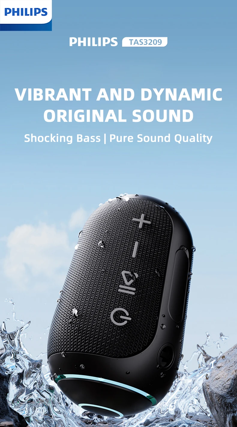 Philips TAS3209 Portable Wireless Speaker W/ Colorful Lighting 1800mAh Battery Life Wonderful Sound Music for Outdoor Camping