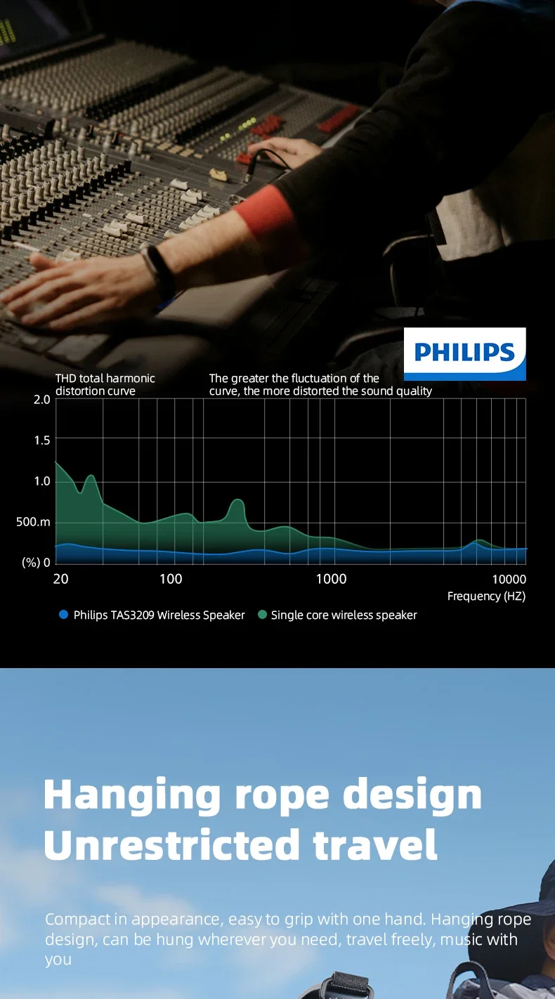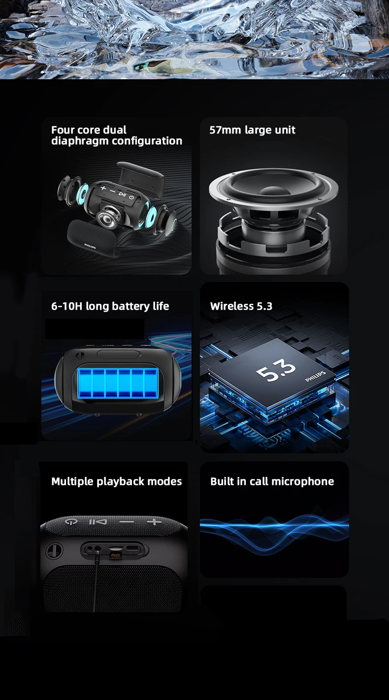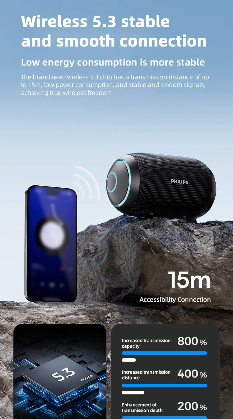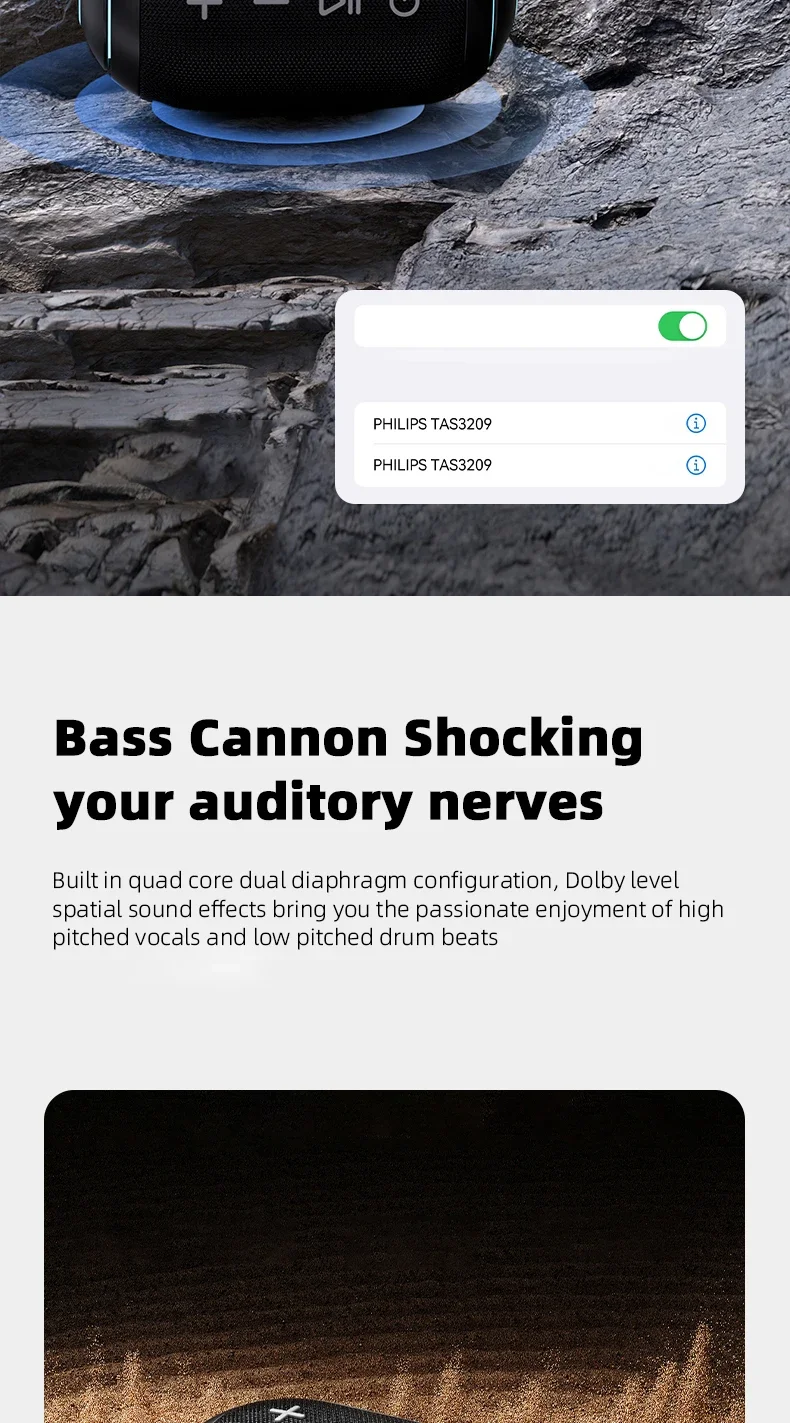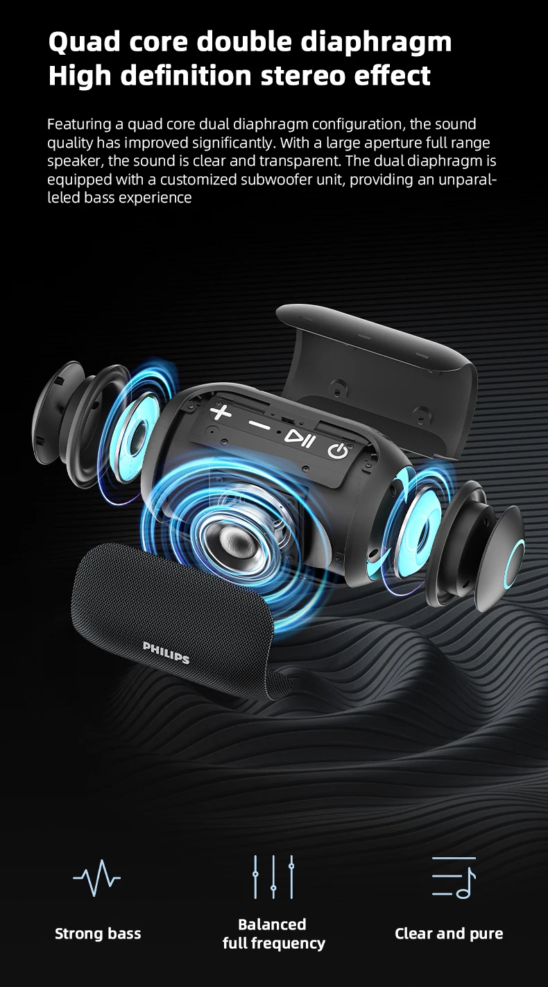 Philips TAS3209 Portable Wireless Speaker W/ Colorful Lighting 1800mAh Battery Life Wonderful Sound Music for Outdoor Camping