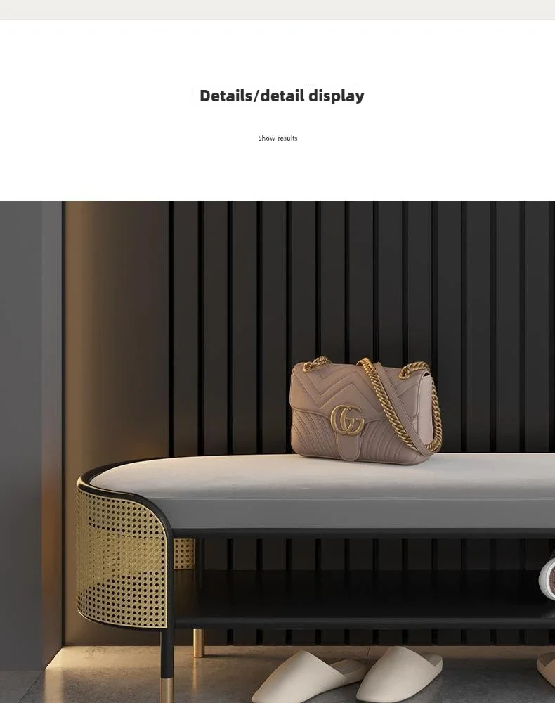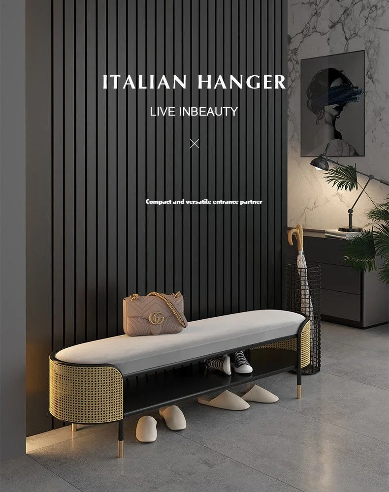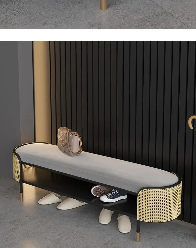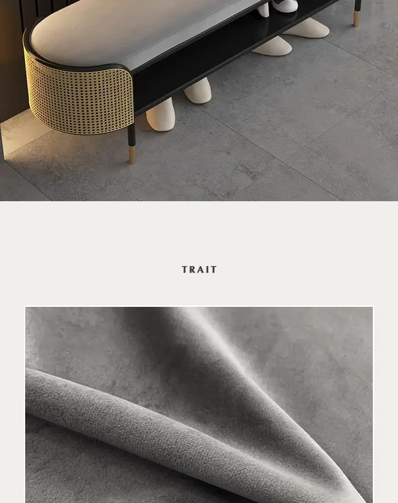 Solid Wood Rattan Shoe Changing Stool,Living Room Fabric Sofa Stool,Modern and Simple Lobby, Light Luxury Homestay Bed End Stool