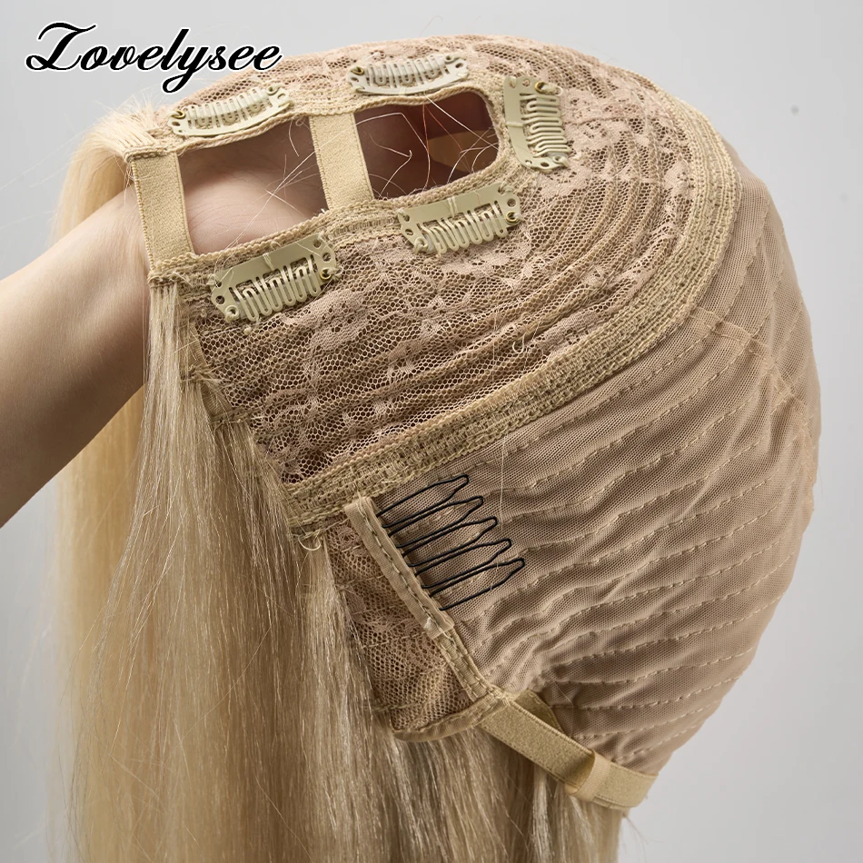 Straight U Part Wigs Brazilian White Blonde Human Hair For Women 150% 180% Density U Shape Wig 14-28 Inch No Leave Out No Glue